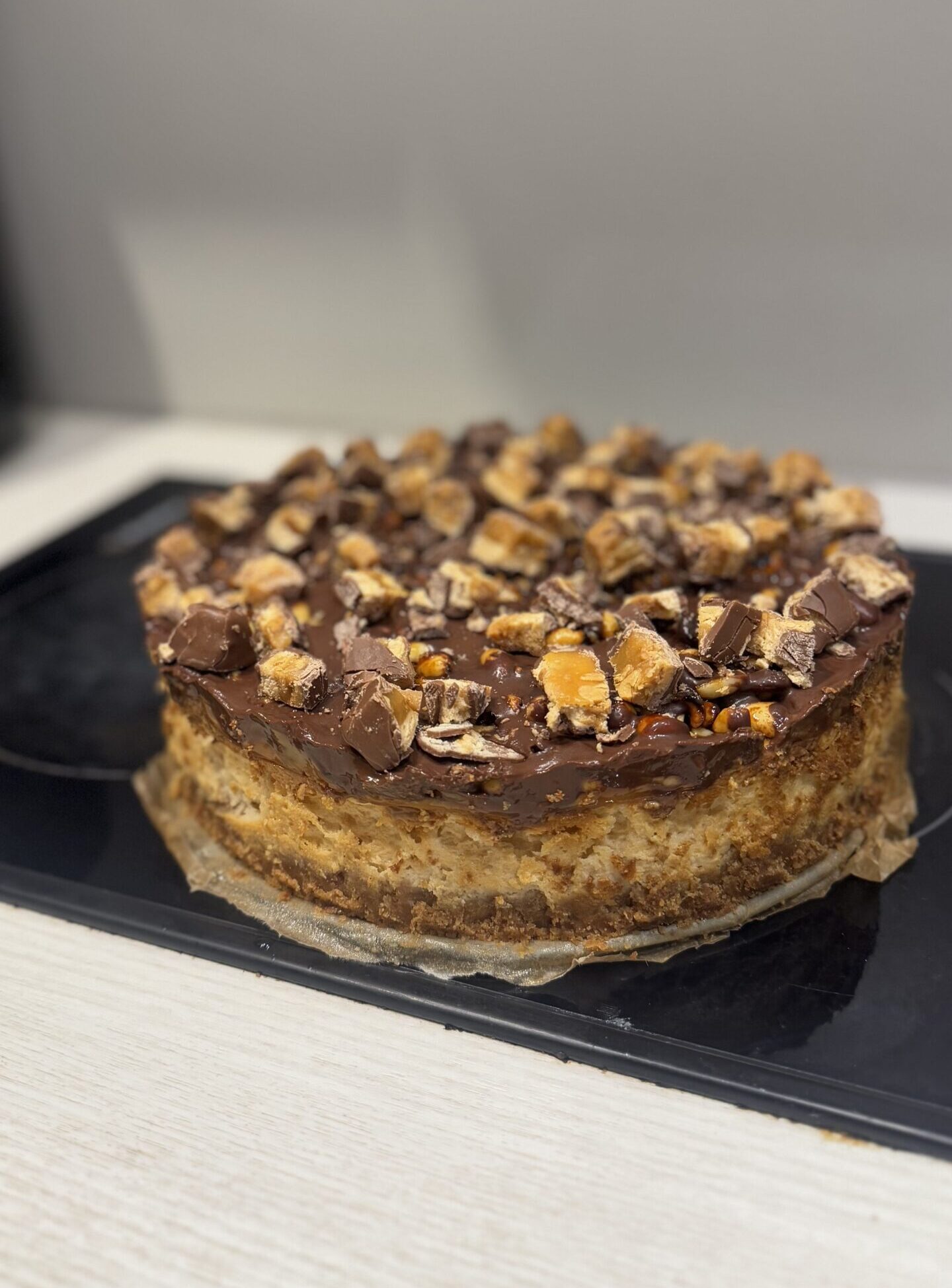 - Kõige lõpus haki snickers ning laota see koogile.